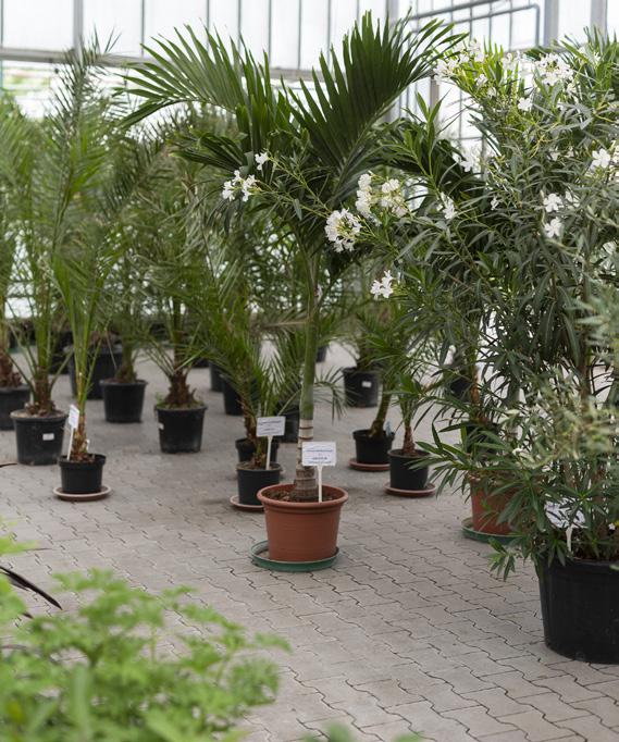 Több ezer cserepes növény kiváló hazai és nemzetközi termelőktől: szobai levéldísz növények, szobai virágzók, soliterek, egynyári és évelő kerti és balkonnövények, örökzöldek hatalmas fajta, szín és méret választékban 1600 négyzetméteren.